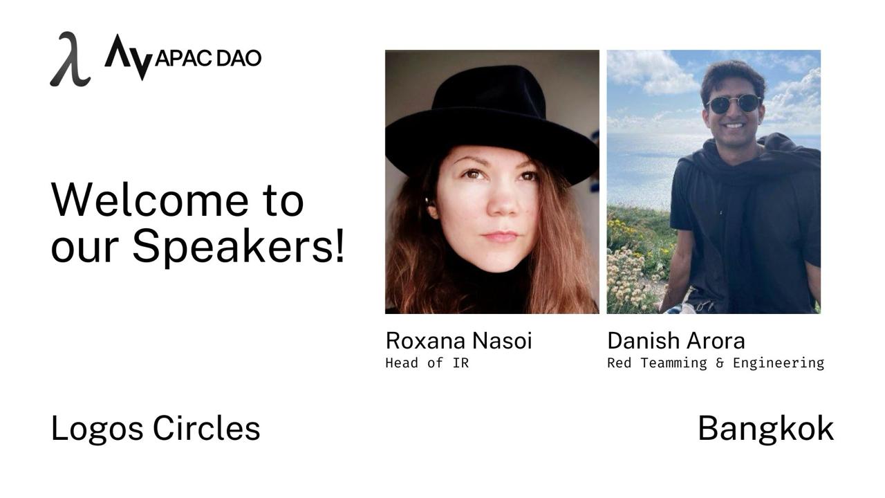 We’re excited to welcome Roxana Nasoi (Head of IR) and Danish Arora (Red Teaming & Engineering) from Logos to the first Logos Circle Bangkok chapter.