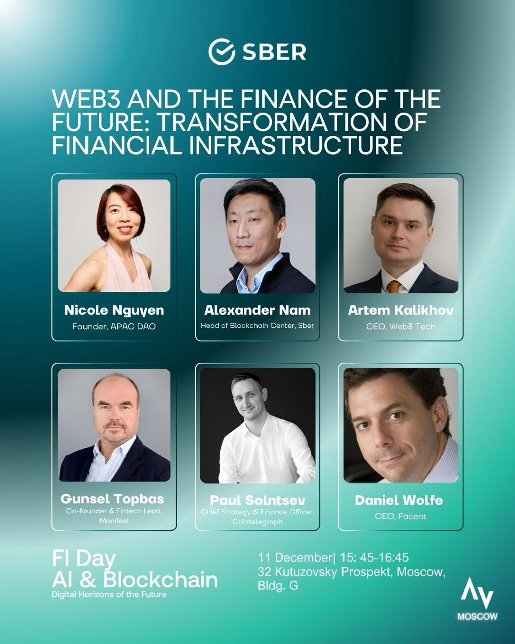 She will join a panel hosted by Sber (Russia’s largest bank) to discuss how Web3 is transforming financial infrastructure – with insights from global leaders across institutions, builders, and media.